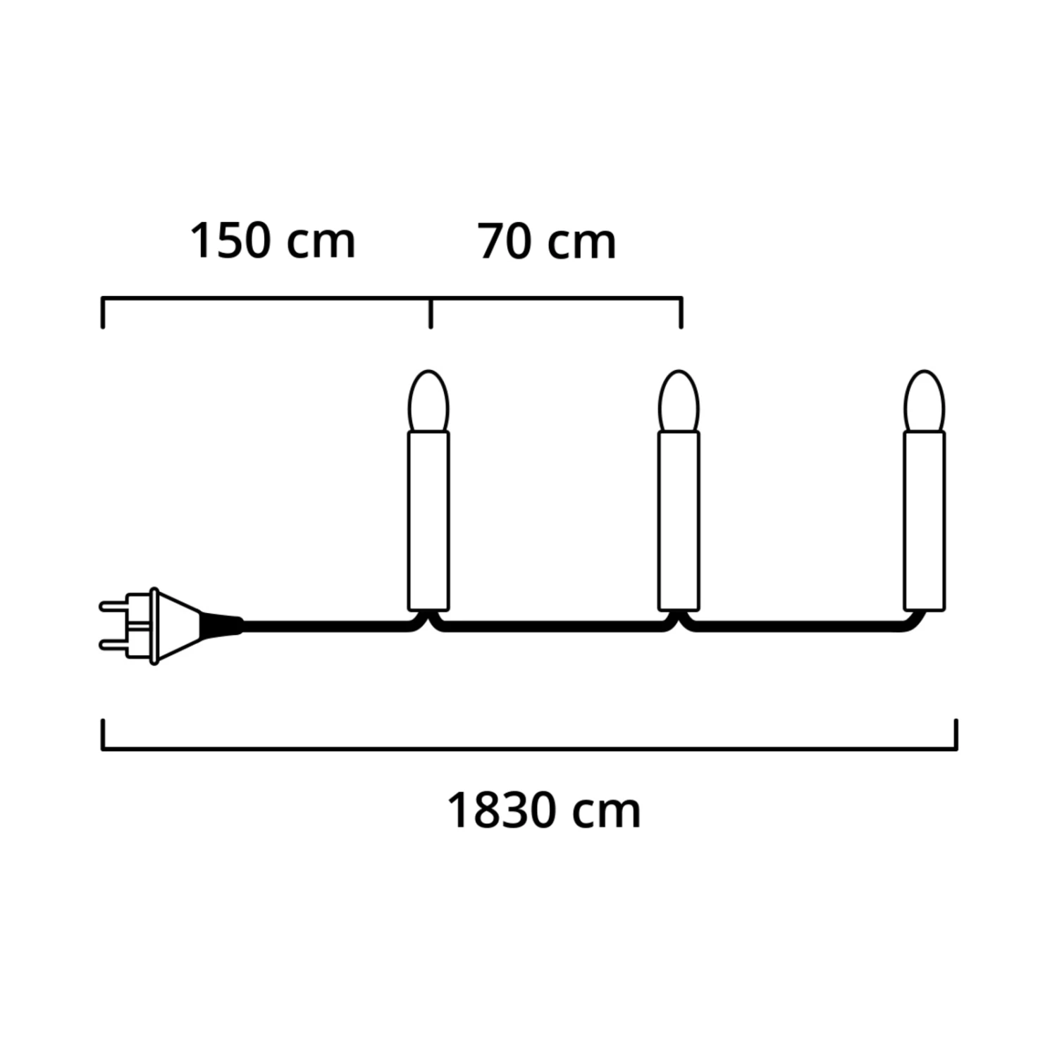 | Sonstige Maße | Gesamtlänge 1830 cm, Zuleitung 150 cm, Kerzenabstand 70 cm |
