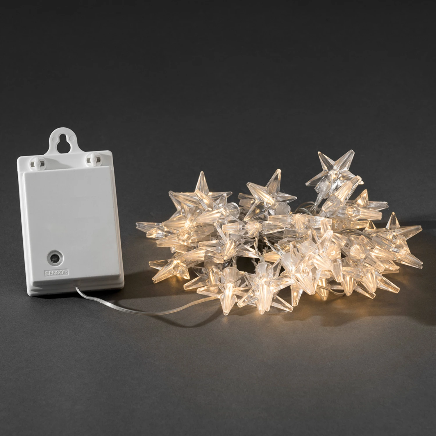 Warmweiß leuchtende LED-Sternen-Lichterkette für den Außenbereich – 40-flammig, batteriebetrieben