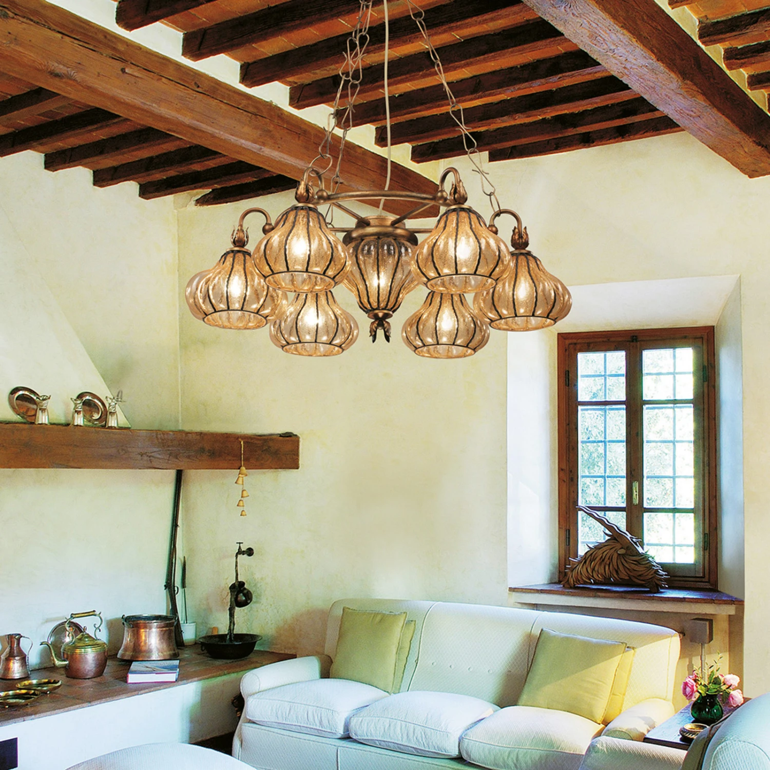 Handgefertigte Hängeleuchte Carro mit schönen Glasschirmen