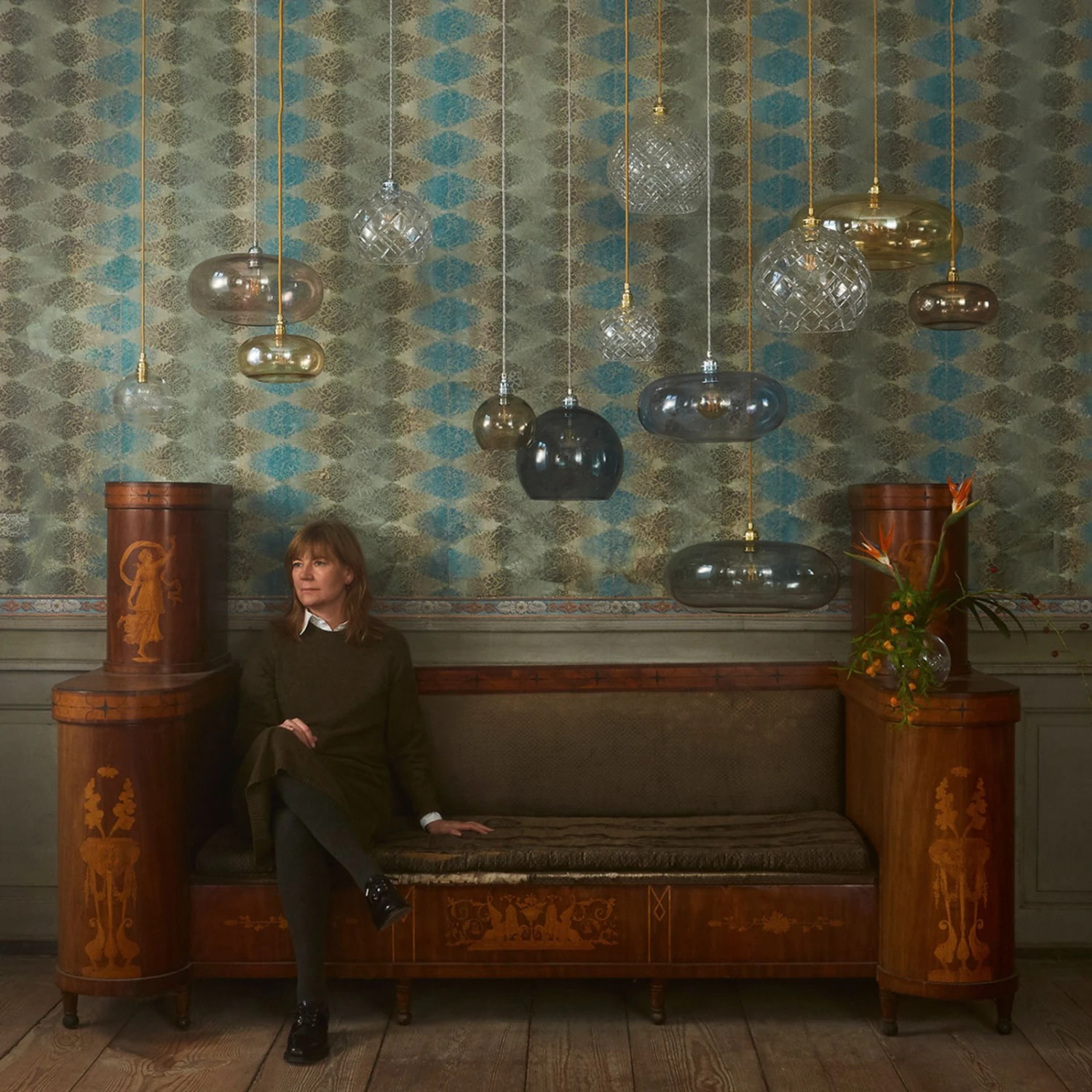 Der Schirm besteht aus mundgeblasenem Glas. Jede Leuchte ist ein Unikat; herstellungsbedingt kann es zu geringen Abweichungen wie kleinen Lufteinschlüssen etc. kommen.