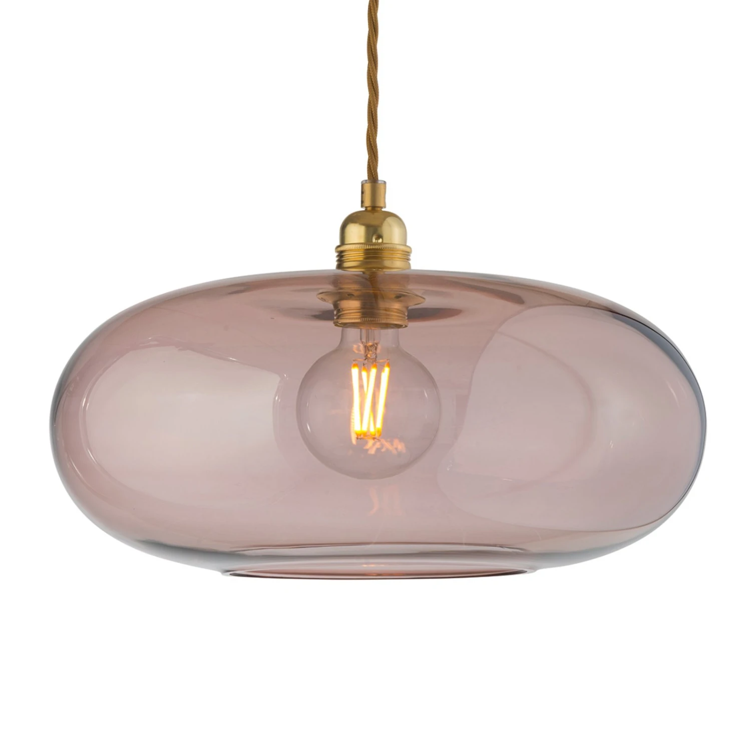 Die moderne Pendelleuchte Horizon überzeugt durch ihr elegantes sowie ästhetisches Design. Der mundgeblasene Glasschirm, der in seiner Form eher oval und flach gearbeitet ist, scheint voller Leichtigkeit von der Decke zu schweben. Dabei gibt das farbige, aber dennoch durchscheinende Glas den Blick frei auf das Innere und lässt gleichzeitig das Licht in alle Richtungen in den Raum gleiten. Zum Abrunden der modernen Optik bieten sich dekorative Filament- oder Retrofitlampen an, die über das Zubehör erhältlich sind.