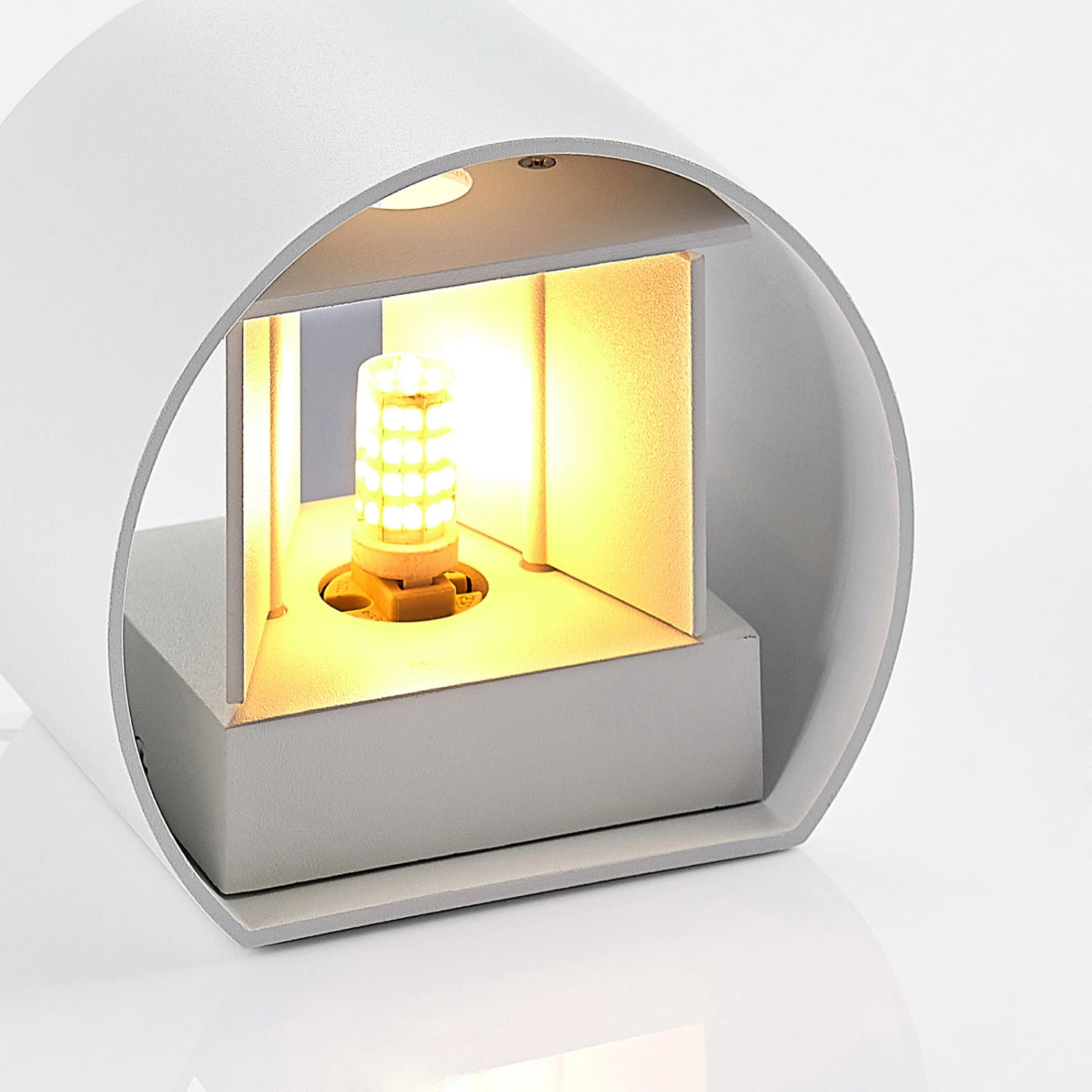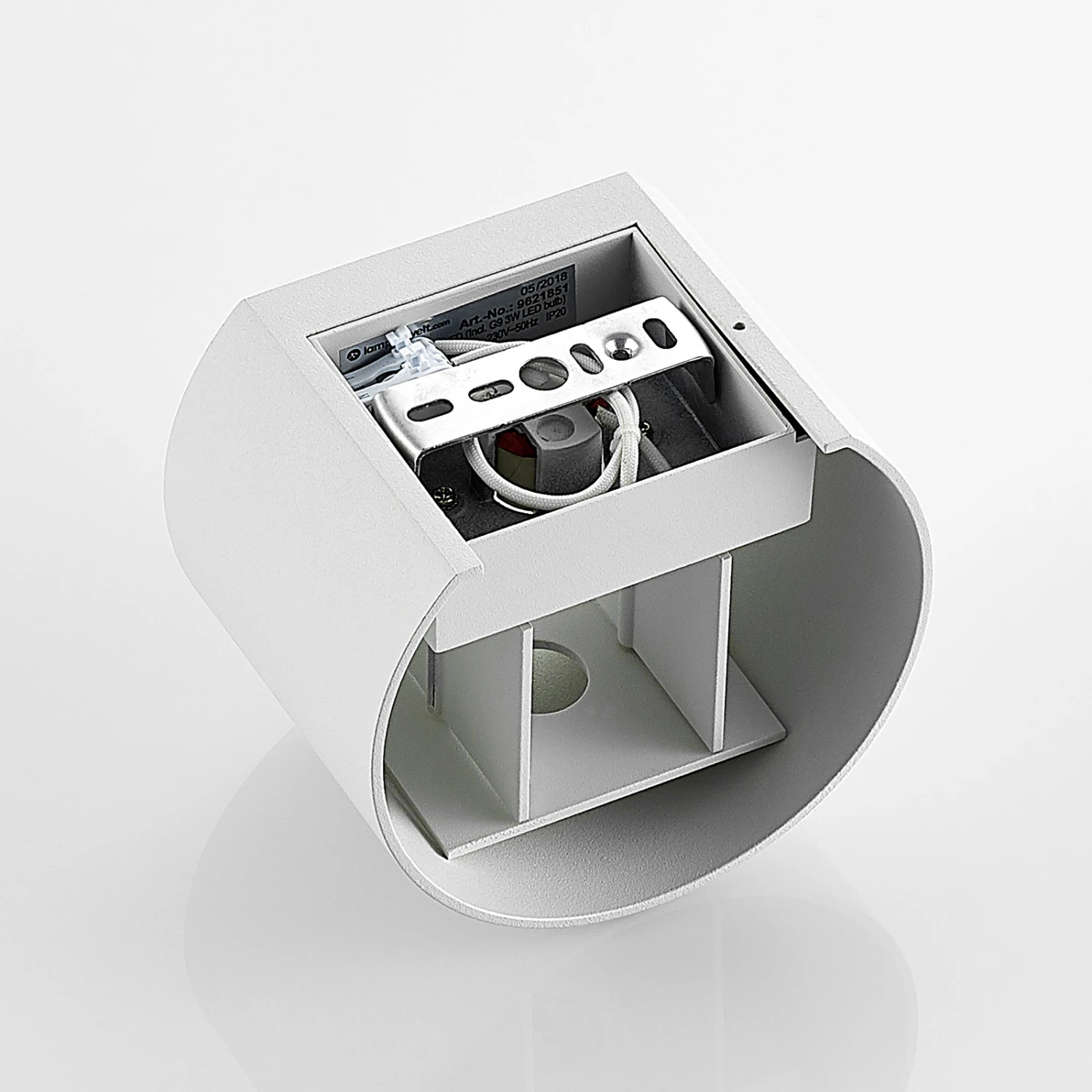 Mattweiße Wandleuchte Jördis in halbrunder Form, Lichtaustrittswinkel anpassbar