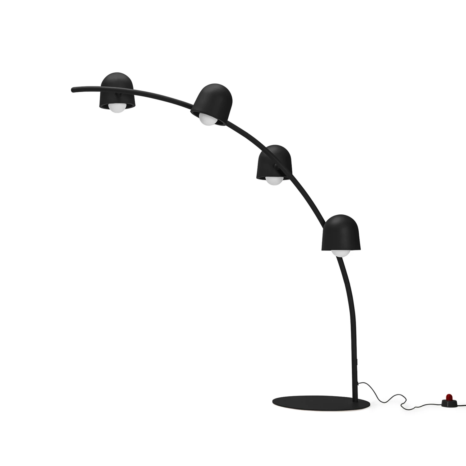 Die Stehlampe Big Lebow bringt ein markantes Maß an Spontanität in die Inneneinrichtung. Die solide Bogenleuchte begleitet stilvoll ein Sofa und besitzt eine imposante Größe. Ihr weiter Bogen verfügt über vier Leuchtenschirme, die mit entsprechenden Leuchtmitteln bestückt werden können. Die einzelnen Schirme sind beweglich, so dass der Lichteinfall jederzeit variiert werden kann. Die Stehleuchte ist durch ein Stromkabel mit dem Stromkreis verbunden und ermöglicht somit eine flexible Positionierung der Leuchte im Raum. Die Helligkeit des generierten Lichtes lässt sich mit Hilfe eines Dimmers am Kabel steuern.