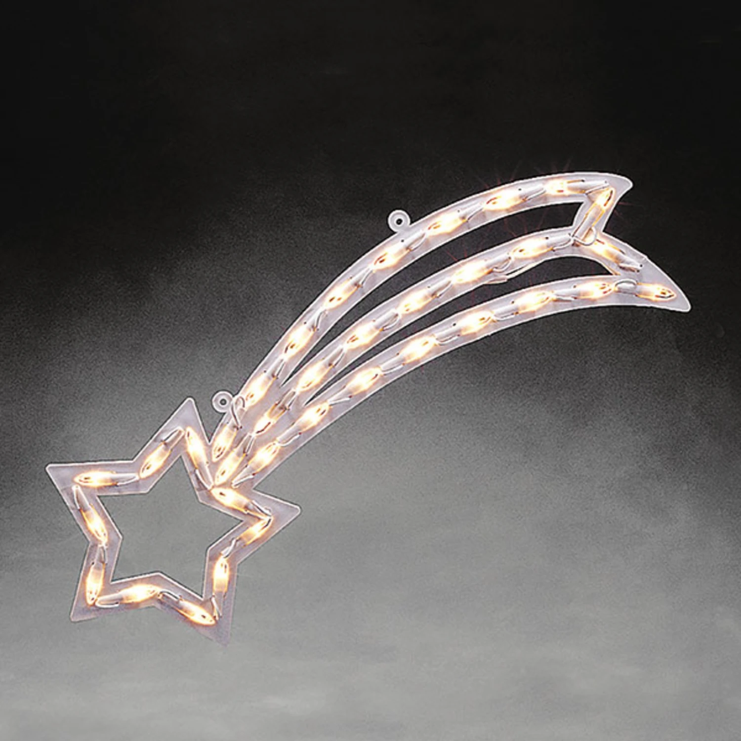 Warmweiß leuchtende LED-Silhouette Komet – eine tolle Fensterdeko