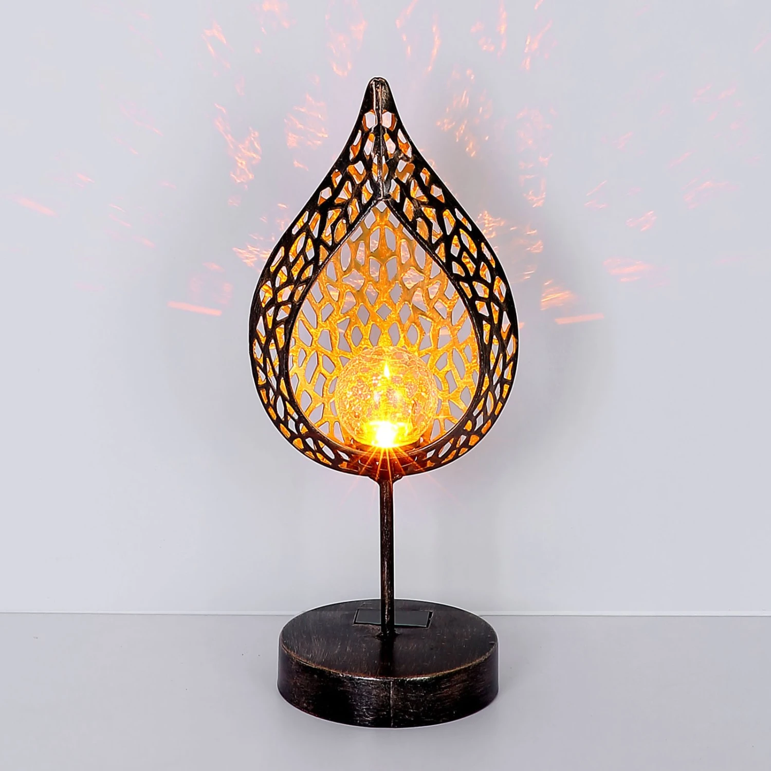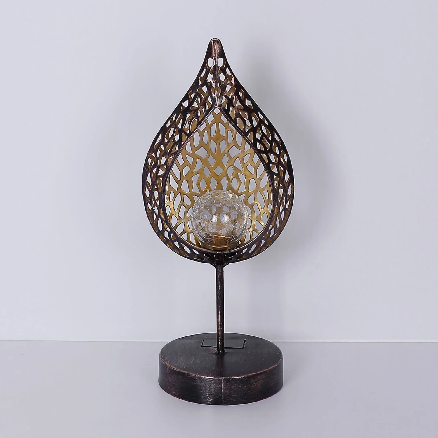 Blattförmige LED-Solarleuchte mit Glaskugel in Crackle-Optik