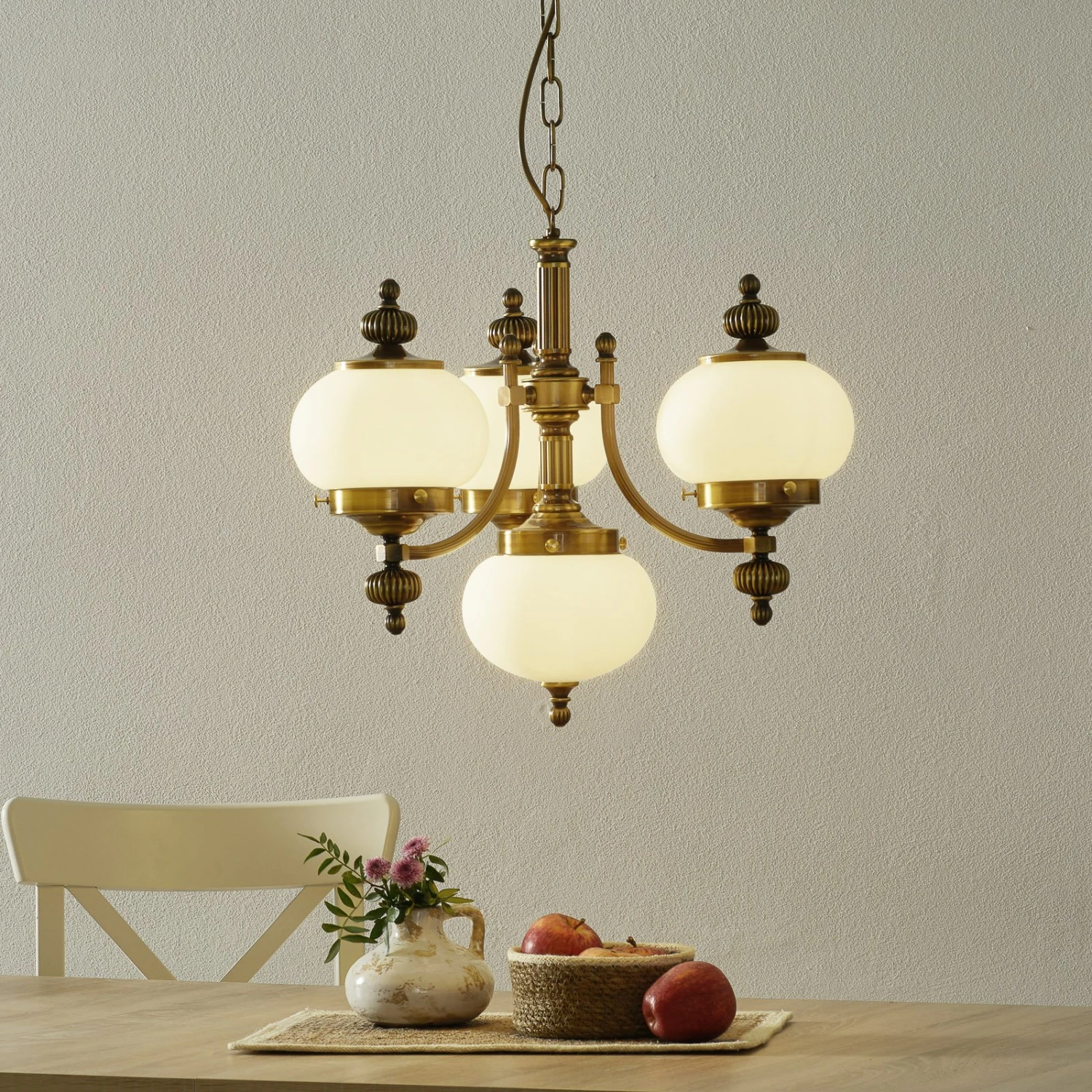 Eindrucksvoller Kronleuchter Delia mit vierflammiger Opalglas-Beleuchtung