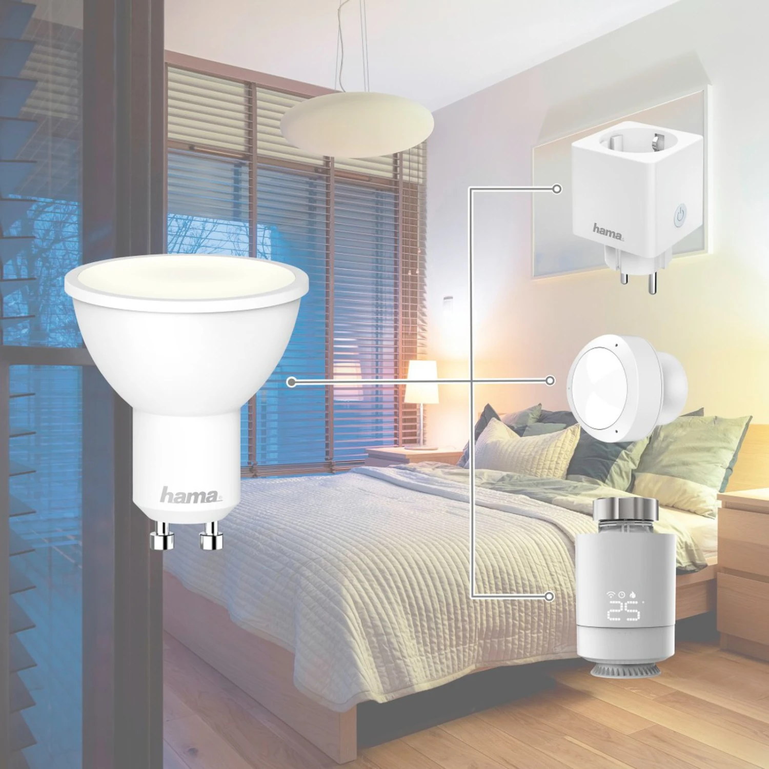 So lassen sich Leuchten mit GU10-Fassung auf smarte Weise modernisieren. Nach der Einbindung kann dieses Smart-Home-Leuchtmittel bequem von der Couch aus geschaltet sowie stufenlos gedimmt werden. Zudem lässt sich die Farbtemperatur von warmweiß (2.700 K) bis tageslicht (6.500 K) einstellen.