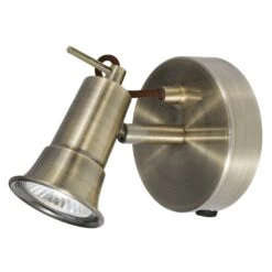Dieser stilvolle Wandstrahler beleuchtet Räume auf akzentuierte Weise. Der Strahler ist schwenkbar und kann individuell ausgerichtet werden, um stets optimale Lichtverhältnisse zu schaffen. Das runde Design in Altmessing setzt dabei klassische Akzente, sodass der Wandstrahler in unterschiedlichen Einrichtungsstilen den passenden Platz findet.
