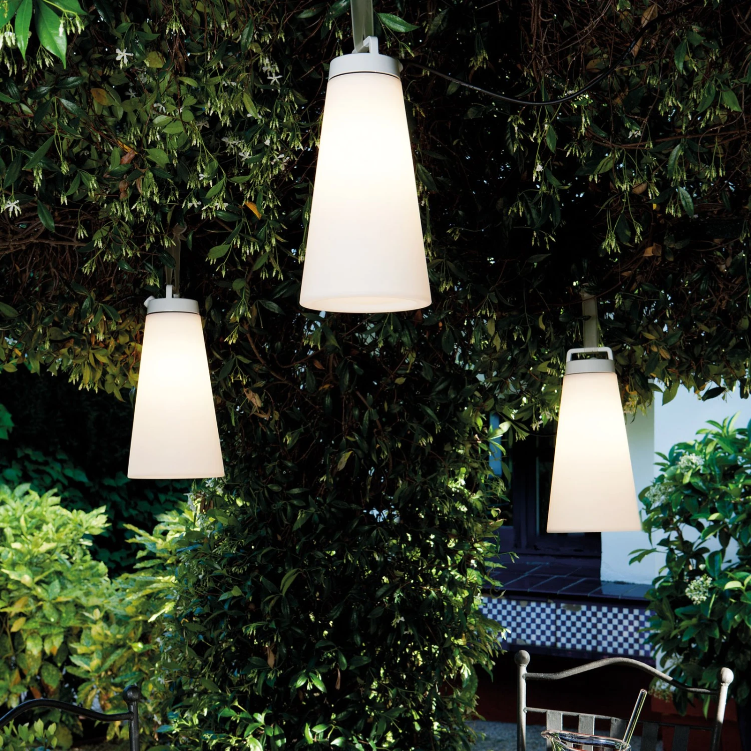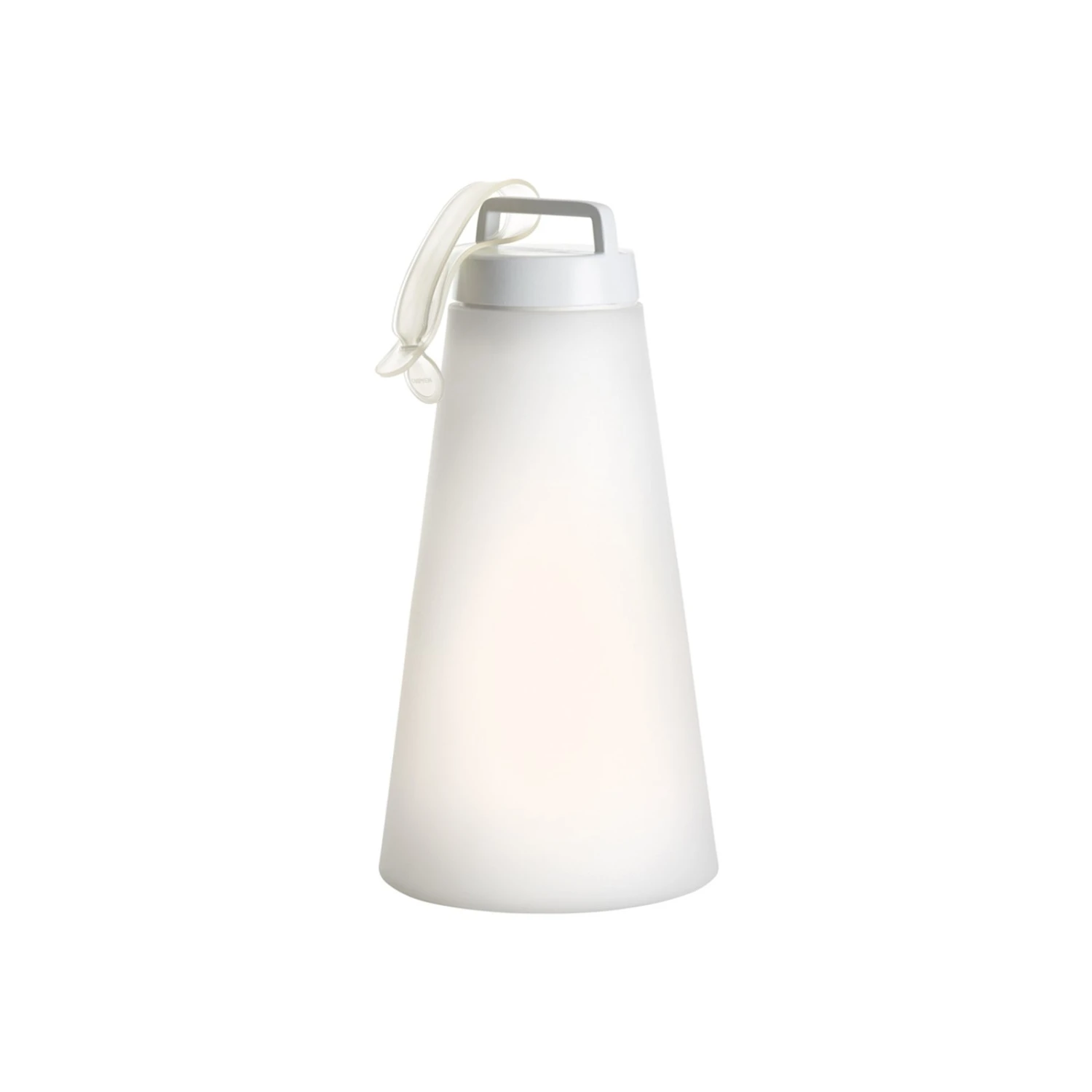 Sasha ermöglicht eine vielseitige, dekorative Stimmungsbeleuchtung an beliebigen Orten im Innen- und Außenbereich. Die vom spanischen Design-Studio Nahtrang entworfene LED-Dekoleuchte ist mit einer Aluminiumkappe samt Henkel zum Aufhängen ausgestattet. Unterhalb befindet sich der als Kegelstumpf gestaltete Diffusor. Dessen satinierter Kunststoff streut das warmweiße Licht der integrierten LED sanft ringsum. Das Schalten und Dimmen erfolgt mit der beiliegenden Fernbedienung. Dank der Ausstattung mit Akku ist Sasha völlig mobil einsetzbar.