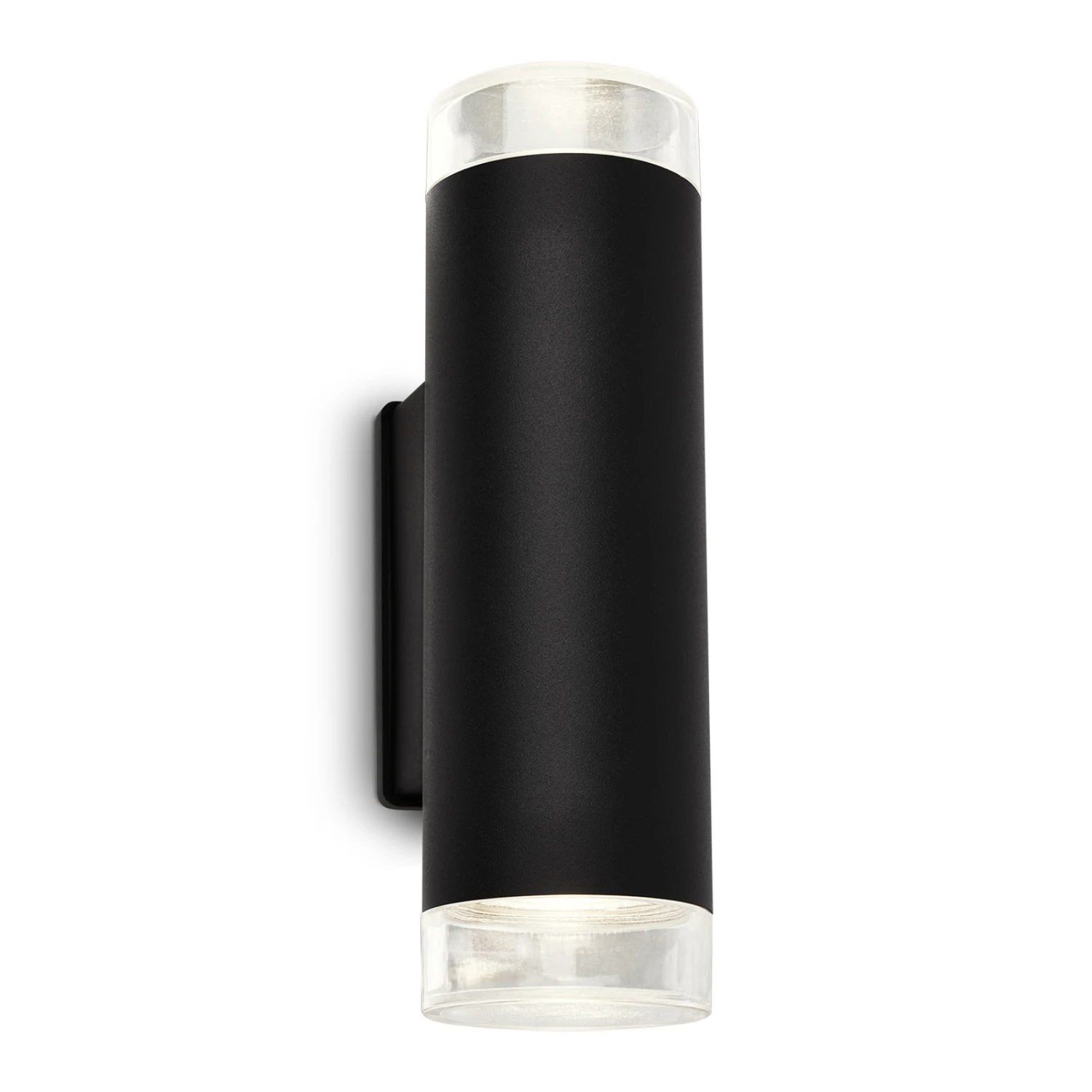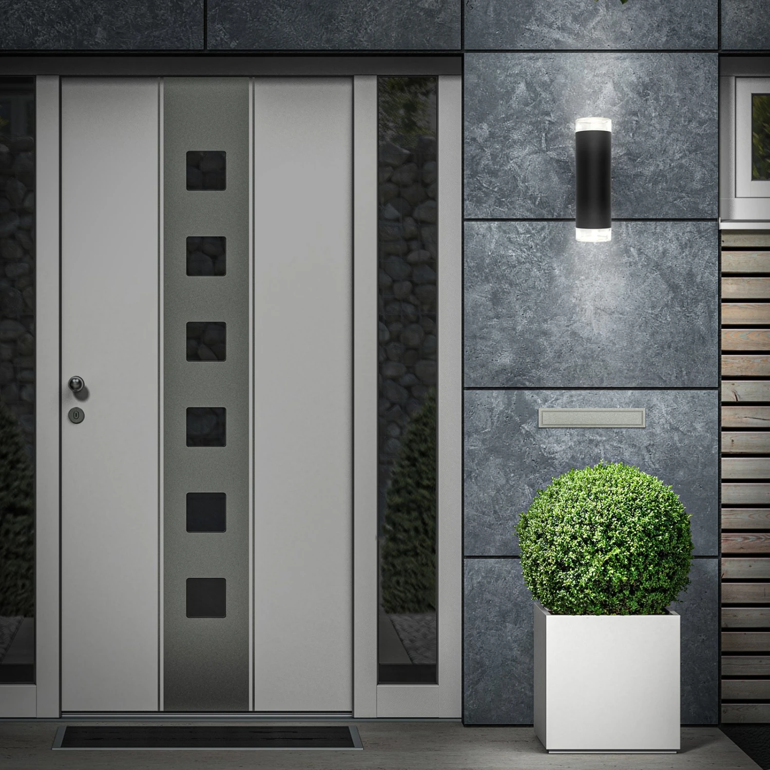 Die Fassade von Häusern wird mit dieser LED-Außenwandleuchte aus Metall mit Diffusoren aus klarem Kunststoff mit einem effektvollen Licht nach oben und unten beleuchtet. Rechts und links des Einganges oder an der Fassade rund ums Haus setzt die Leuchte schöne Lichtakzente und beleuchtet die Umgebung mit universalweißer Beleuchtung. Die LED-Leuchtmittel sind im Lieferumfang enthalten und können ausgetauscht werden.