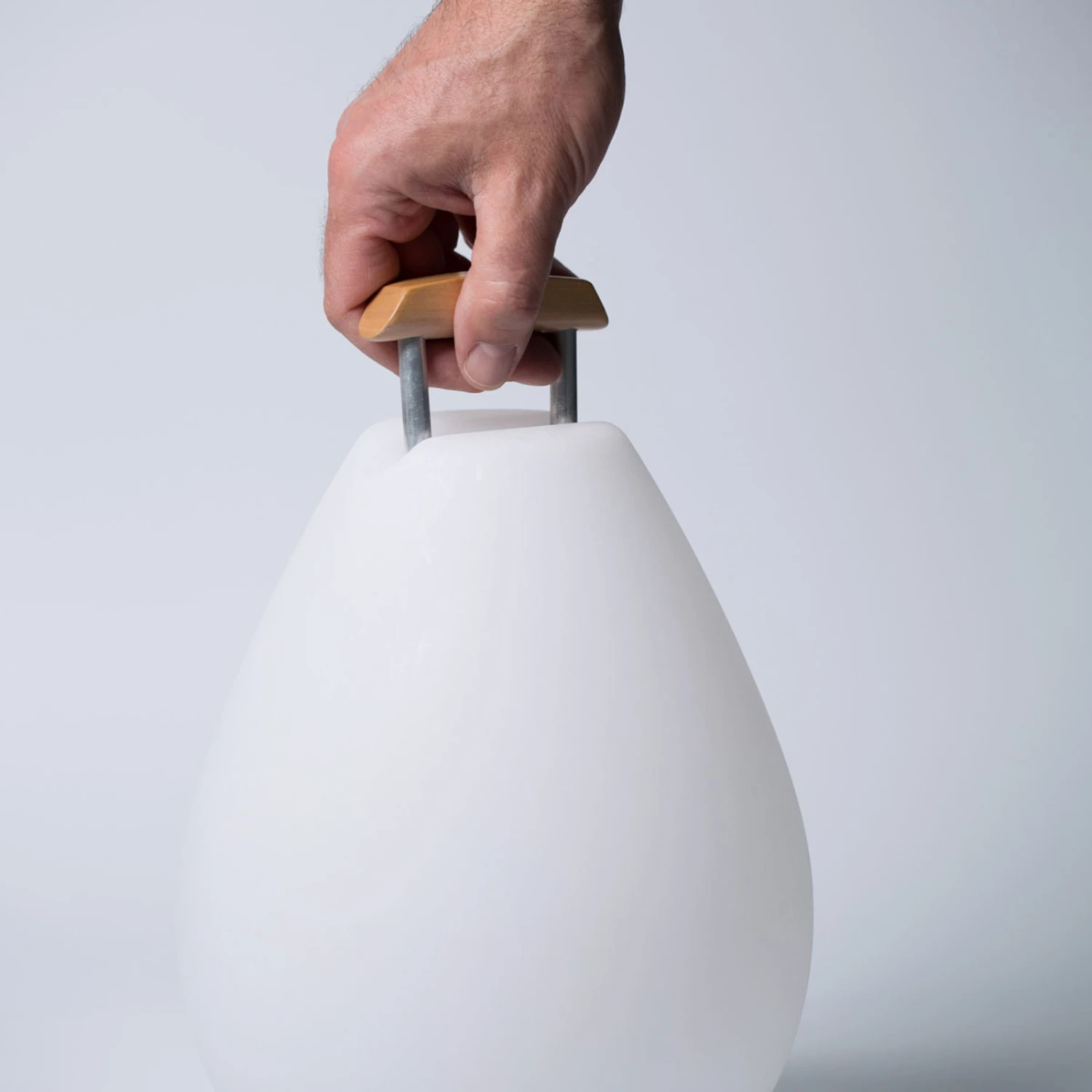 Das Erscheinungsbild von Vessel 2S wird durch einen weißen Kunststoffkörper in Tropfenform mit abgeflachter Ober- und Unterseite geprägt, der mit einem nach oben ausziehbaren Holzgriff versehen ist. Dank handlicher Dimensionen, widerstandsfähiger Ausfühung, Schwimmfähigkeit und zahlreicher Einstellmöglichkeiten bietet Vessel 2S für nahezu jeden Außen- und Innenbereich eine stimmige Lichtdekoration.