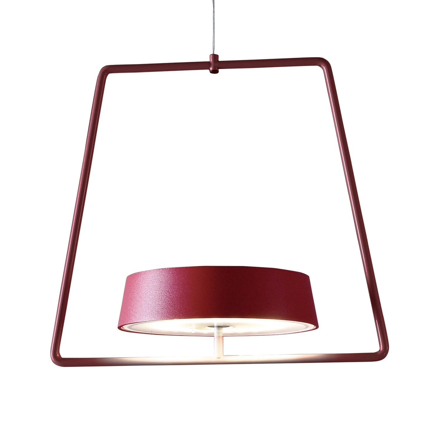 Diese ungewöhnliche, moderne Hängeleuchte ist ein Dekorationselement, das gleichzeitig angenehmes Licht spendet. Ihre dezenten Maße und das auffallende, grazile Design ermöglichen eine mühelose Integration in zahlreiche Wohnumgebungen. Der trapezförmige Rahmen ist aus Aluminium gefertigt und über ein Seil mit einer kleinen Kugel verbunden, die sowohl ein Pendel als auch ein Gegengewicht darstellt. Das Seil kann über Balken, Äste oder andere Vorrichtungen gelegt werden und bildet somit die Aufhängung. Mittig wird auf einem Magnetverbinder der runde Lampenschirm platziert, der das warmweiße Licht der LEDs nach unten abstrahlt.