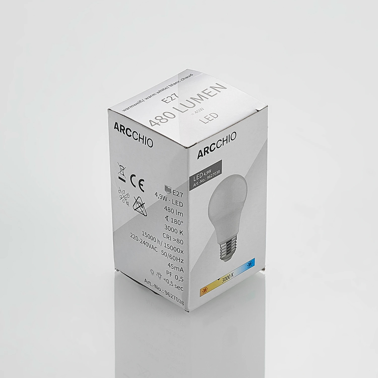 Als Ersatz für eine 40 W-Halogenlampe lässt sich diese LED-Lampe E27 in den verschiedensten Bereichen nutzen. Das Leuchtmittel aus Polycarbonat ist robust und spendet warmweißes Licht.