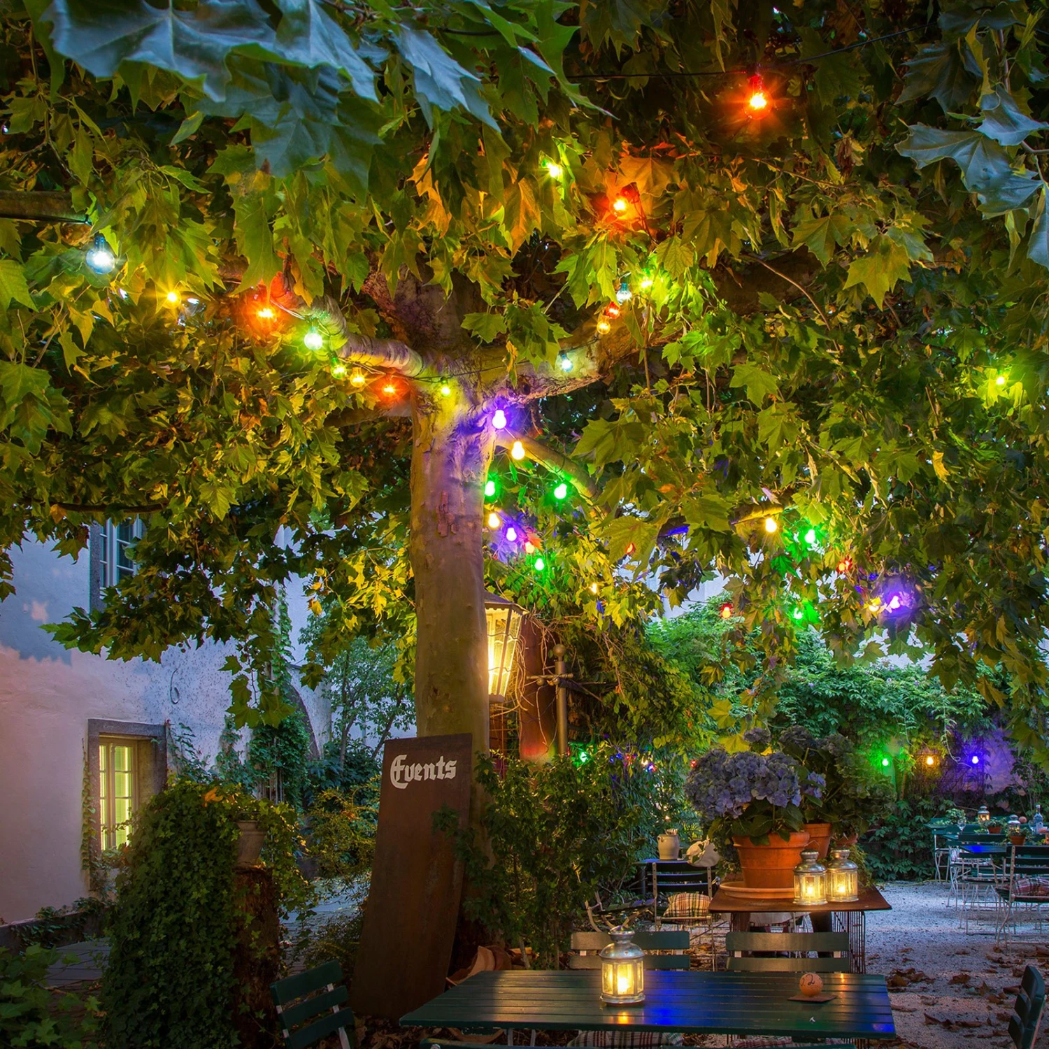 Basis-Set – Bunte LED-Lichterkette Biergarten mit warmweißen LEDs, erweiterbar