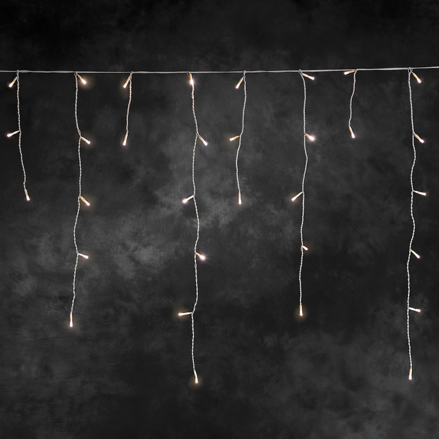 Fenster, Fassaden und Balkonbrüstungen lassen sich mit diesem LED-Lichtervorhang Eisregen komfortabel schmücken. Die zahlreichen Leuchtdioden strahlen sehr stimmungsvolles, warmweißes Licht ab, so dass der Eisregen ein behagliches Ambiente auf dem Grundstück erzeugt. Sein weithin sichtbarer Lichterglanz erhellt die dunkle Winternacht und lässt mit seinem Lichtschein das passende vorweihnachtliche Flair entstehen.