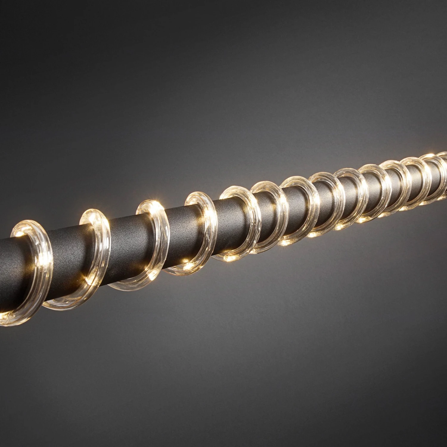 Auf sechs Meter Länge verteilen sich bei diesem transparenten Lichtschlauch aus Kunststoff 96 LEDs, deren warmweiß abstrahlendes Licht die Umgebung in ein zartes Licht taucht. Ein toller Dekoartikel, mit dem sich der Außenbereich, wie z. B. Balkon- und Treppengeländer, nicht nur zu Weihnachten angenehm gestalten lässt. Ohne Batterien – sie können über das Zubehör erworben werden. Es ist sowohl ein Lichtsensor als auch ein 6- und 9-Stunden-Timer integriert. Dank Schutzart IP44 schaden auch stärkere Witterungseinflüsse dem Lichtschlauch nicht. Es werden 4x D Batterien benötigt.