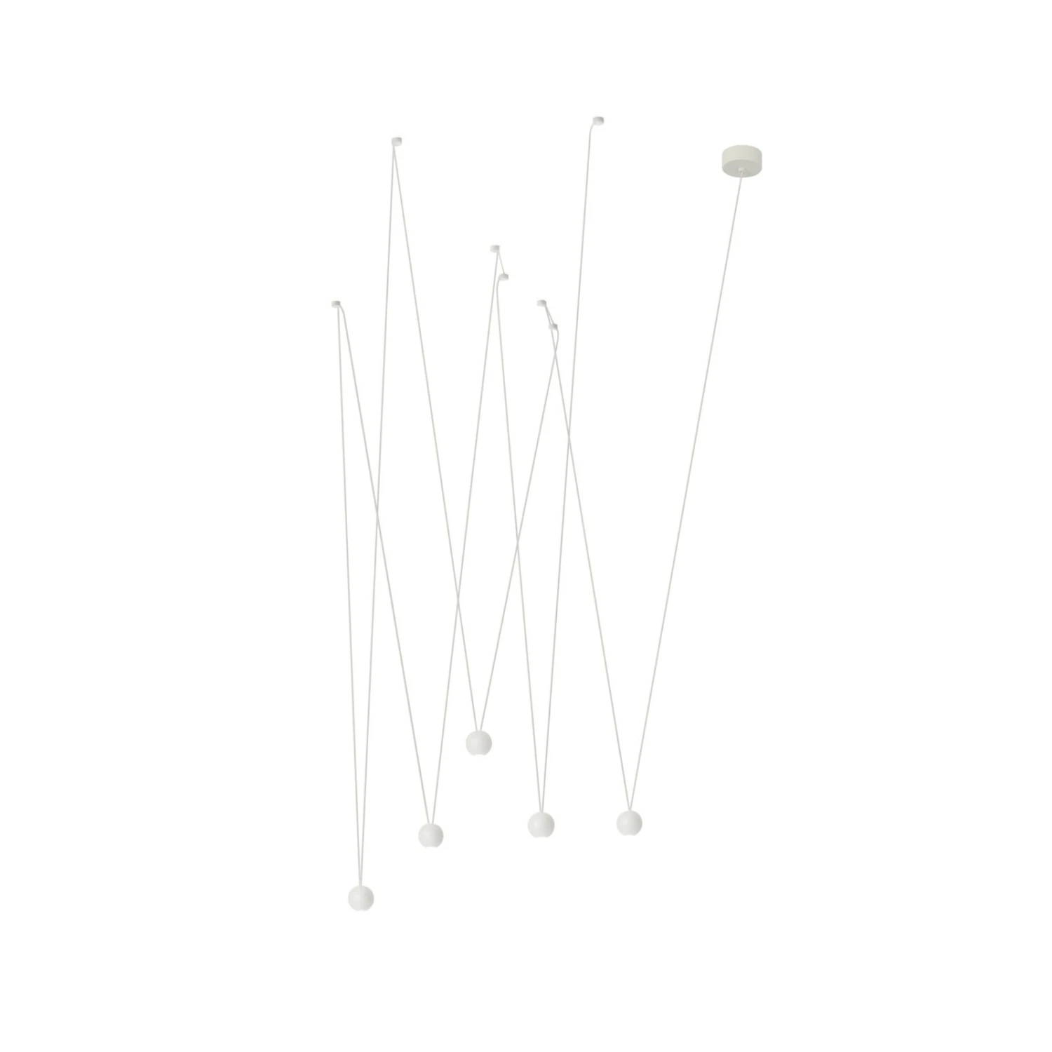 Fünfflammige LED-Pendelleuchte Punto mit kleinen Kugel-Schirmen – dezentralisierte Aufhängung