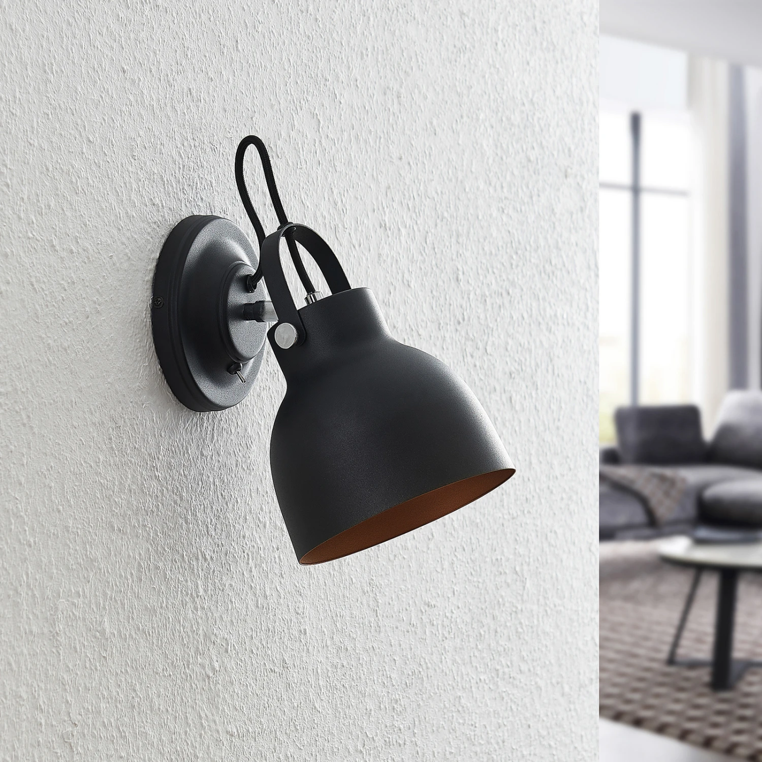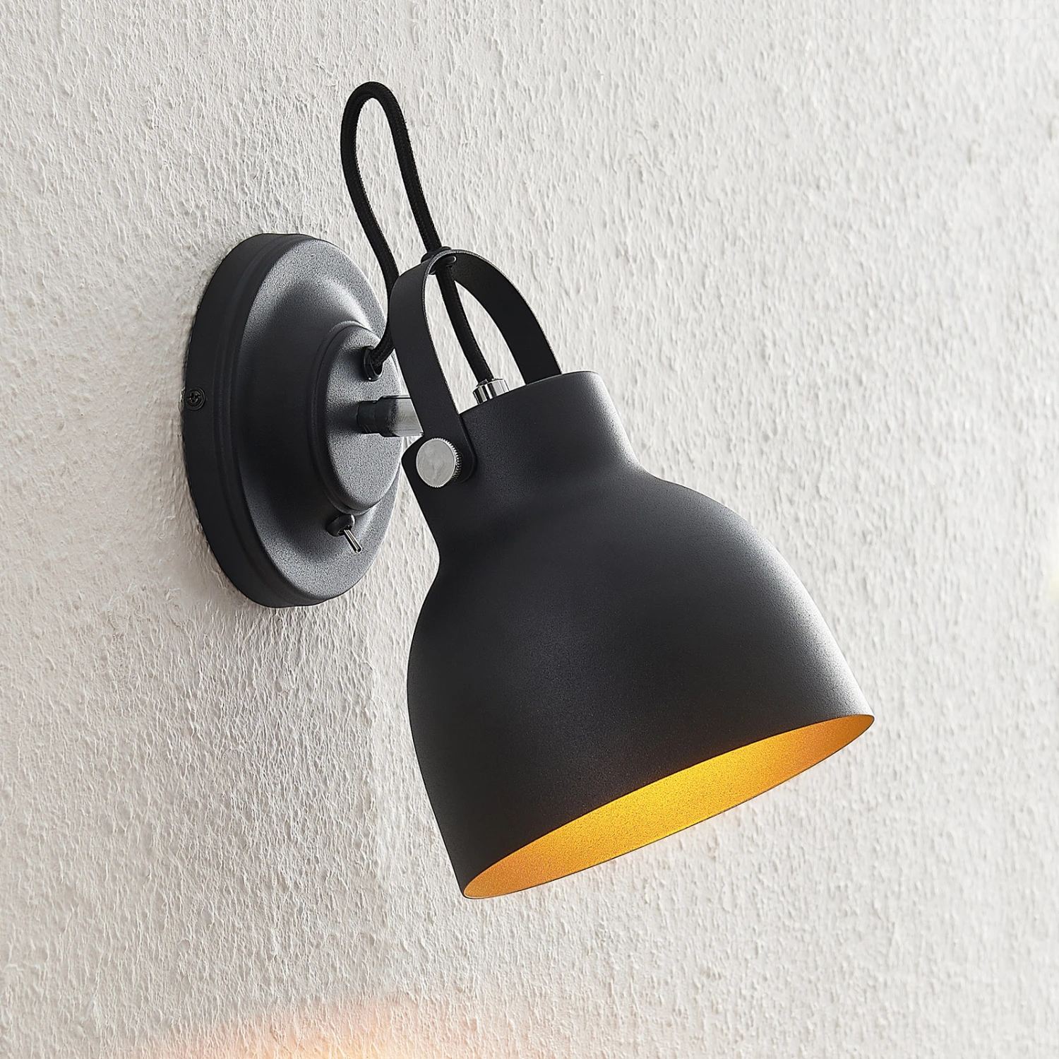 Schwarze Metallwandleuchte Adirta mit goldener Schirminnenseite