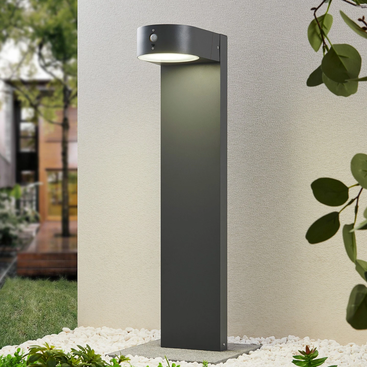 Die LED-Solarsockellampe Jarik integriert sich mit ihrem schlichten Design unkompliziert in den Baustil eines Hauses, ohne diesen zu brechen. Ihr Leuchtenkörper besteht aus Aluminium und besitzt eine anthrazitfarbene Oberfläche. Ihre festverbauten LEDs generieren ein universalweißes Licht, welches eine intensive Beleuchtung des Außenbereichs garantiert. Nach Bedarf kann Jarik mit weiteren Leuchten ihrer Serie kombiniert werden, um einen stimmigen Gesamteindruck zu schaffen. Ihr Bewegungssensor ermöglicht darüber hinaus eine unkomplizierte Steuerung des Lichtes.