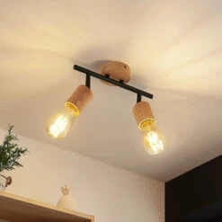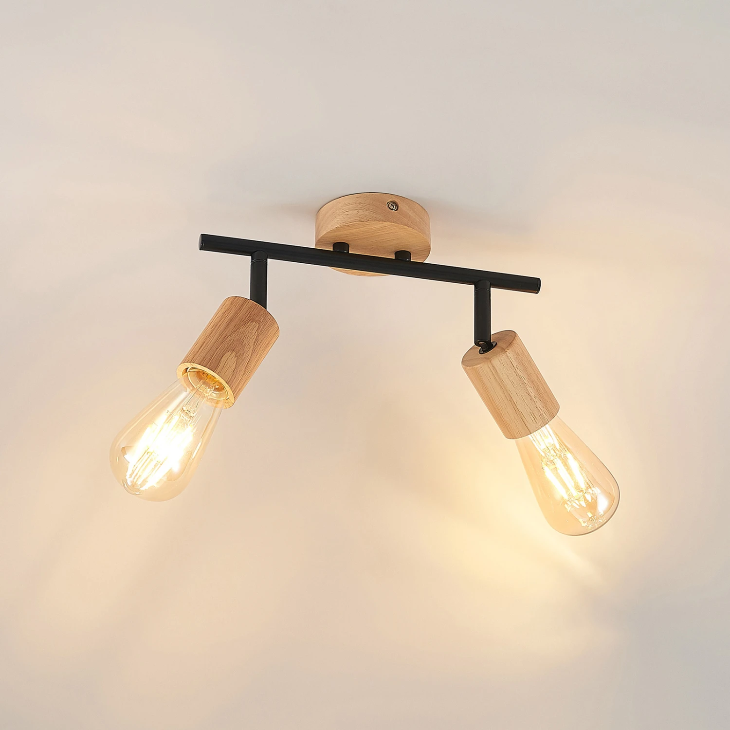 Dieser Deckenstrahler lässt sich in unterschiedliche Umgebungen und vor allem in moderne Stile problemlos einfügen. Seine beiden Lichtquellen wurden ohne Schirm gestaltet und lassen sich mithilfe eines Kugelgelenks in der Position anpassen. Die Leuchte wurde aus schwarzem Stahl und aus Gummiholz hergestellt. Dieser Mix aus unterschiedlichen Materialien wirkt modern und elegant. Die Leuchte Magnivia ist eine stilvolle Beleuchtung für Wohn- und Flurräume.