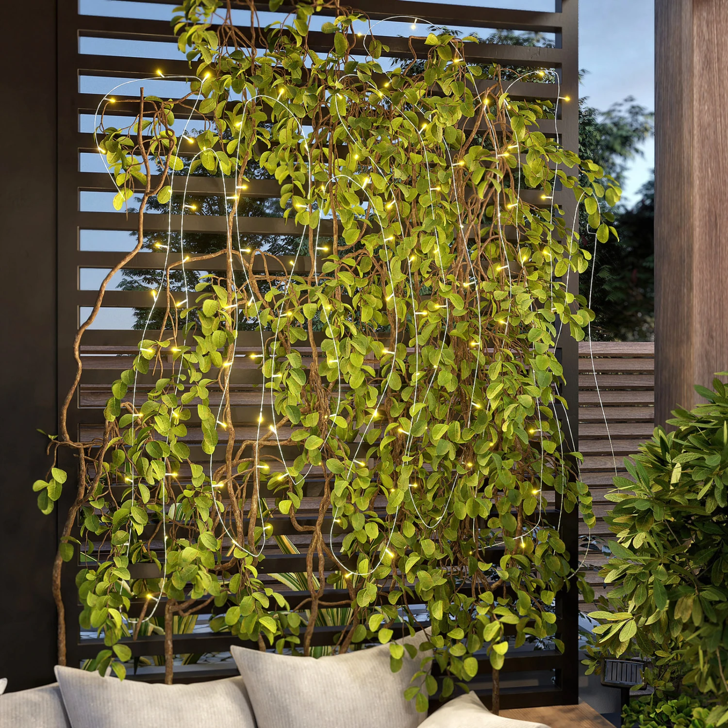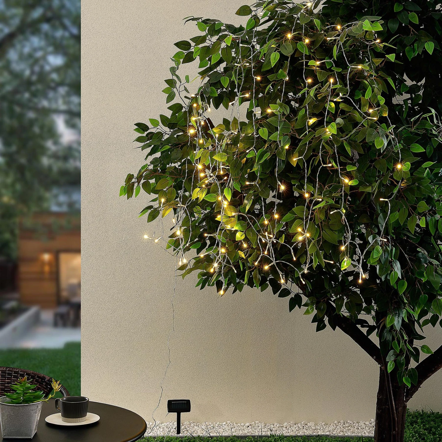 Styrmir eignet sich hervorragend für die Illumination verschiedener Objekte im Garten. Die Lichterkette ist 20 Meter lang und wird durch ein Solarpanel betrieben, so dass kein Stromanschluss nötig ist. Mit einem vollen Akku spendet die Solarleuchte bis zu acht Stunden Helligkeit und verleiht zum Beispiel einem Baum ein besonderes Aussehen. Die Schutzart IP44 macht die LED-Solar-Lichtkette Stymir perfekt für den Außenbereich, denn sie ist gegen Spritzwasser geschützt. Die restliche Gartendekoration kann mit ihr wohlwollend abgerundet und ein attraktives Ambiente im Garten erzeugt werden.