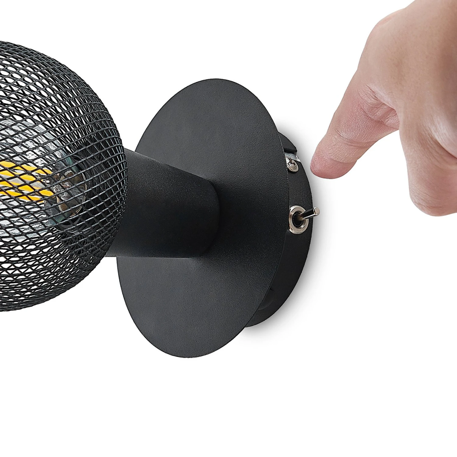 Optisch beeindruckt dieser kompakte Spot mit einer schwarzen Oberfläche, einer runden Form und einem kugelförmigen Schirm aus Eisen, der aus einem ganz feinen Gitter in Drahtoptik besteht und das Licht sanfter streut, aber immer noch gut nach außen dringen lässt, so dass interessante Lichtverhältnisse entstehen.