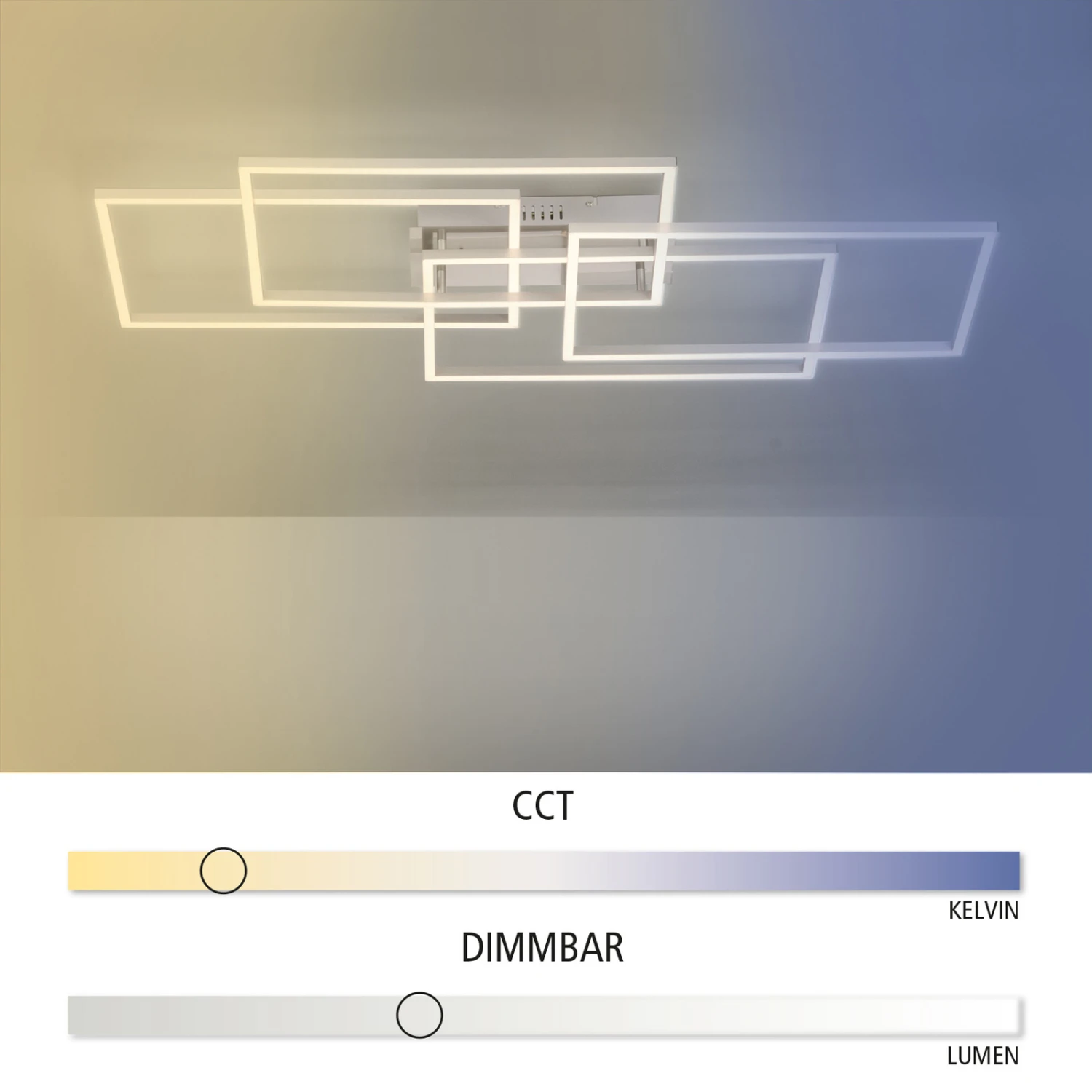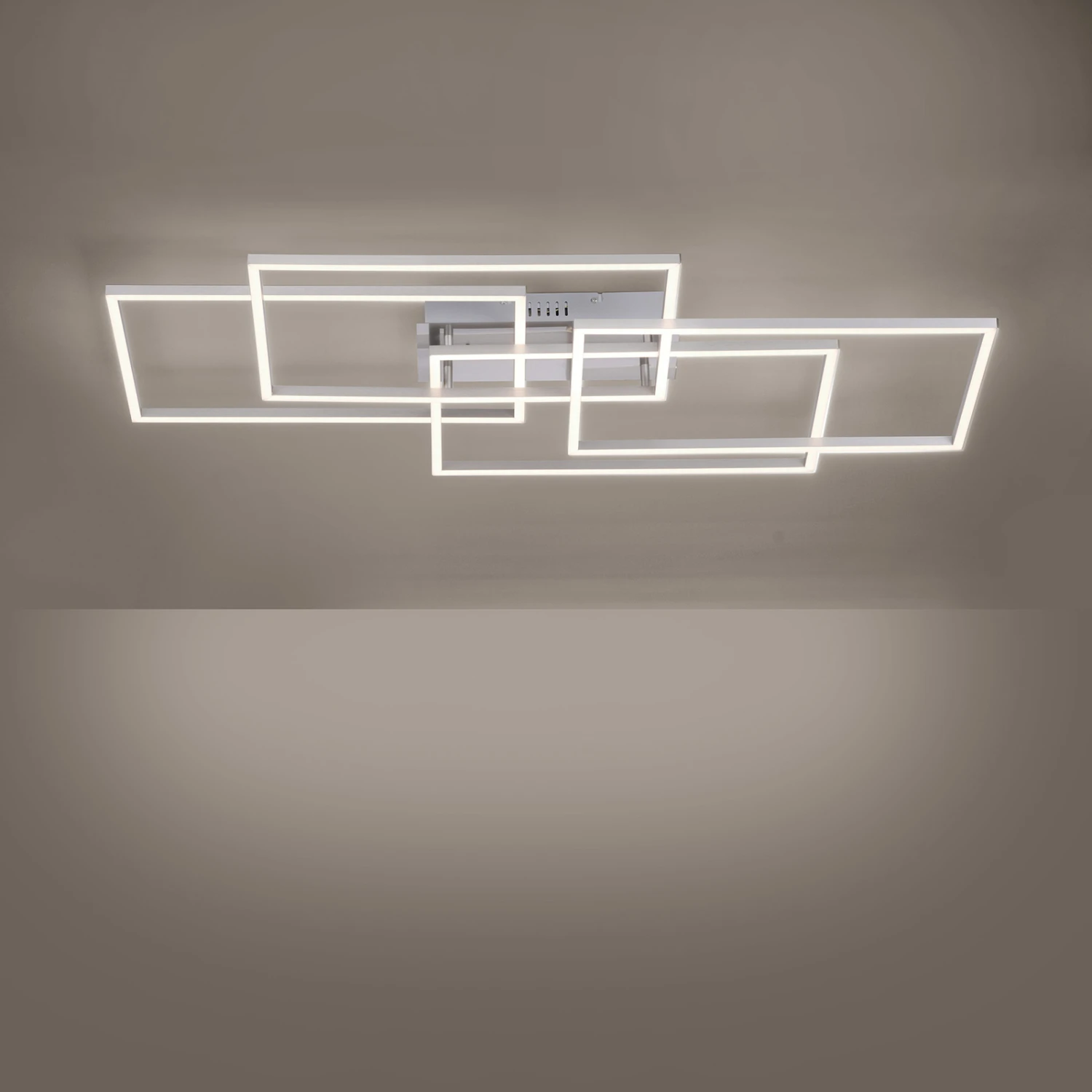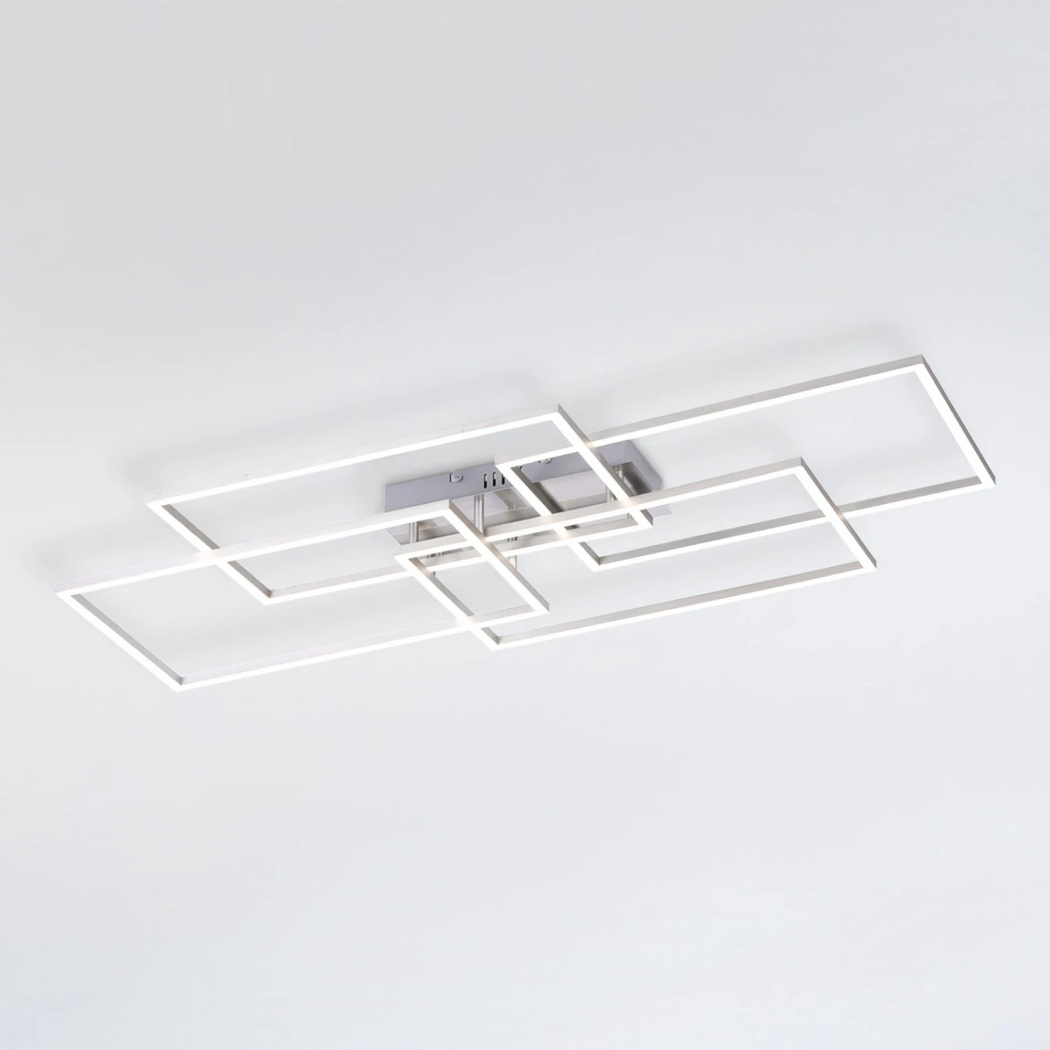 Eckige LED-Deckenleuchte in Silber mit vier Lichtrahmen
