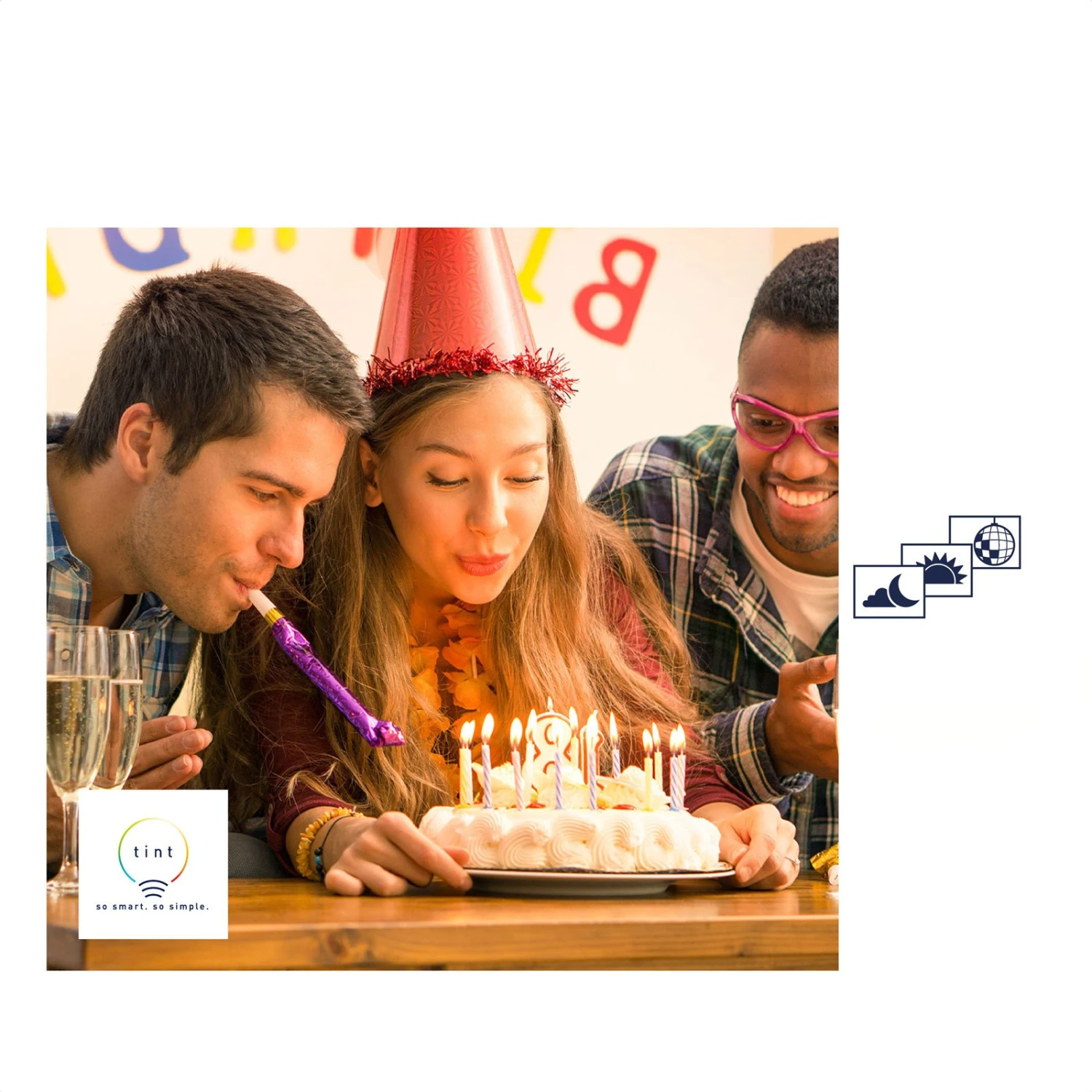 – steuerbar über eine passende tint Fernbedienung (siehe Zubehör)