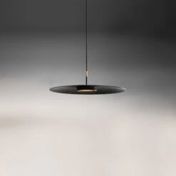 Die LED-Pendelleuchte Overfly plus weckt dank ihres weiten, runden und leicht konkav gewölbten Leuchtenschirmes Assoziationen an ein UFO. Die zarte, äußerst raffinierte Gestaltung wird von feinen Rändelmustern am Rand des Lichtelements in der Mitte des weiten Schirmes sowie im oberen Bereich der starren Aufhängung ergänzt. Overfly plus eignet sich ideal zur Beleuchtung eines Tisches, denn sie strahlt ihr Licht direkt nach unten ab. Dabei erfolgt die Lichtabgabe durch einen Wabenfilter, der vor den LEDs eingesetzt ist.