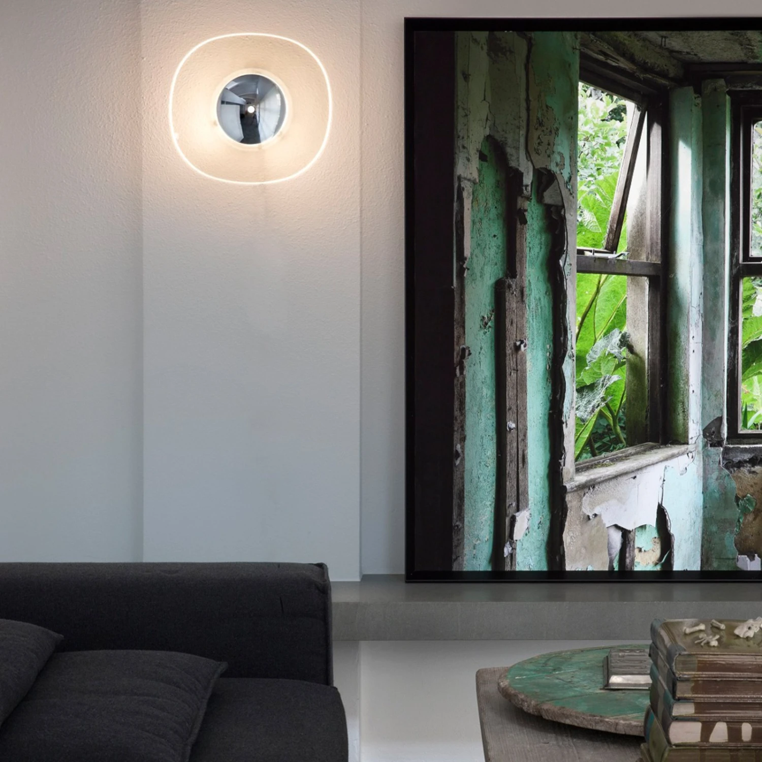 Yolk, das englische Wort für Dotter, sagt eigentlich schon fast alles über diese Designer-Leuchte. Sie sieht nämlich einem Spiegelei nicht ganz unähnlich. In der Mitte die Wandbefestigung und ein rundes chromglänzendes Element, rund um diesen zentralen Punkt ein Ring aus mundgeblasenem Glas. Das Leuchtmittel ist nicht sichtbar und gibt sein Licht sehr diffus, sprich auch indirekt ab, woraus sich ergibt, dass Yolk perfekt ist, um Wohnlichkeit und Gemütlichkeit zu erzeugen.