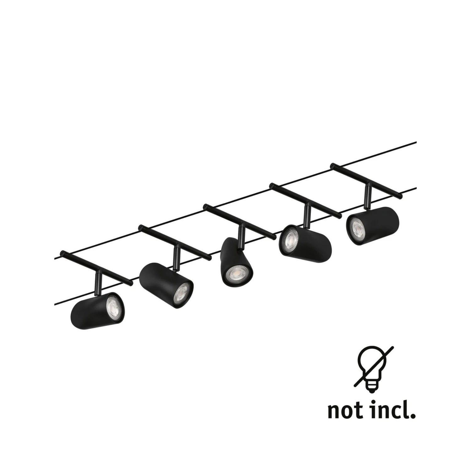 Seilsystem Cup – Komplettset aus Seil, 5 Leuchten und Trafo