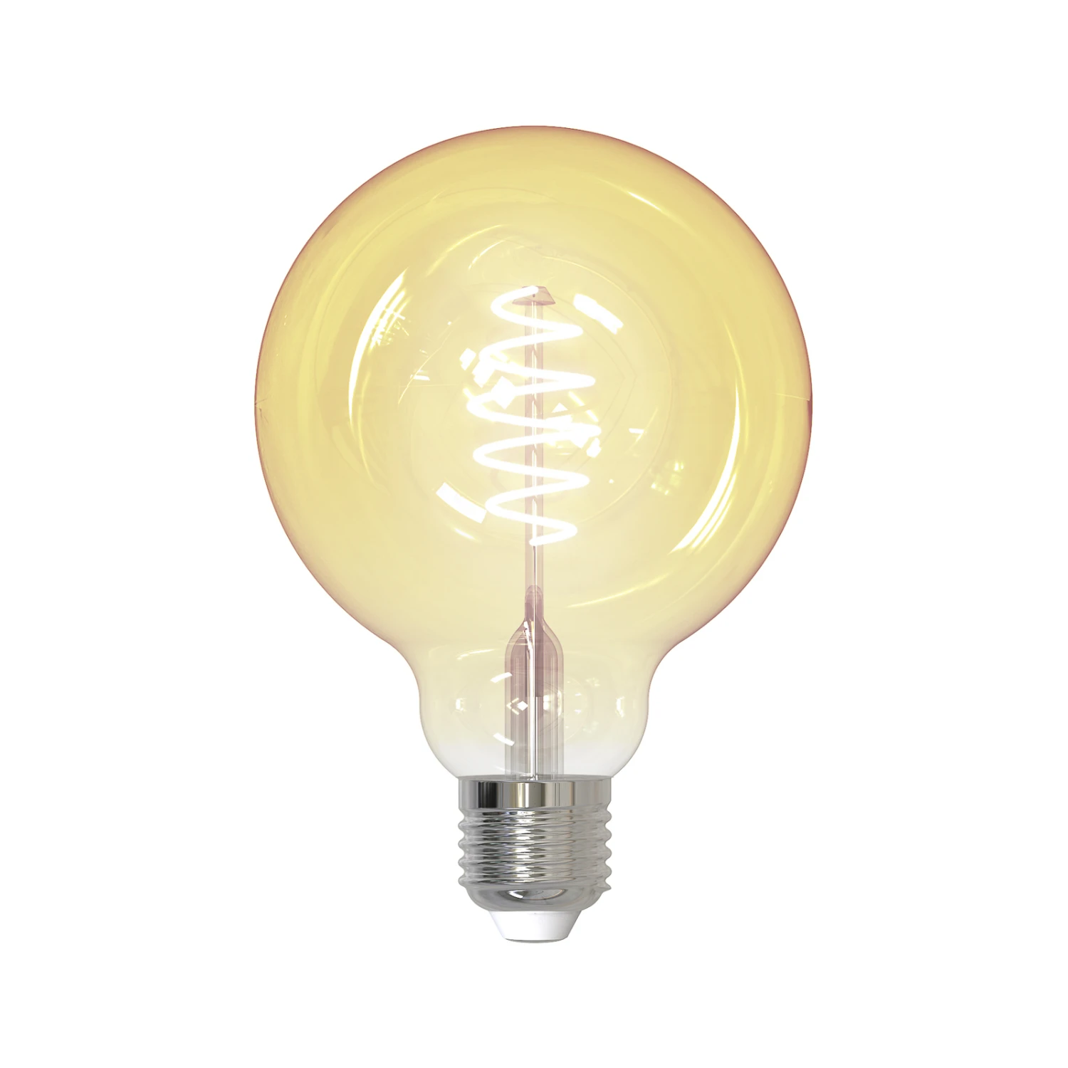 Dieses Leuchtmittel überzeugt durch seine markante, amberfabene Optik und seine smarten Funktionen. Es kann mit einem WLAN-Netzwerk verbunden und mit Hilfe der kostenlosen Tuya-App gesteuert werden (erhältlich für iOS und Android). Es erzeugt eine warmweiße (2.500 K) Lichtfarbe und somit ein gemütliches Ambiente.