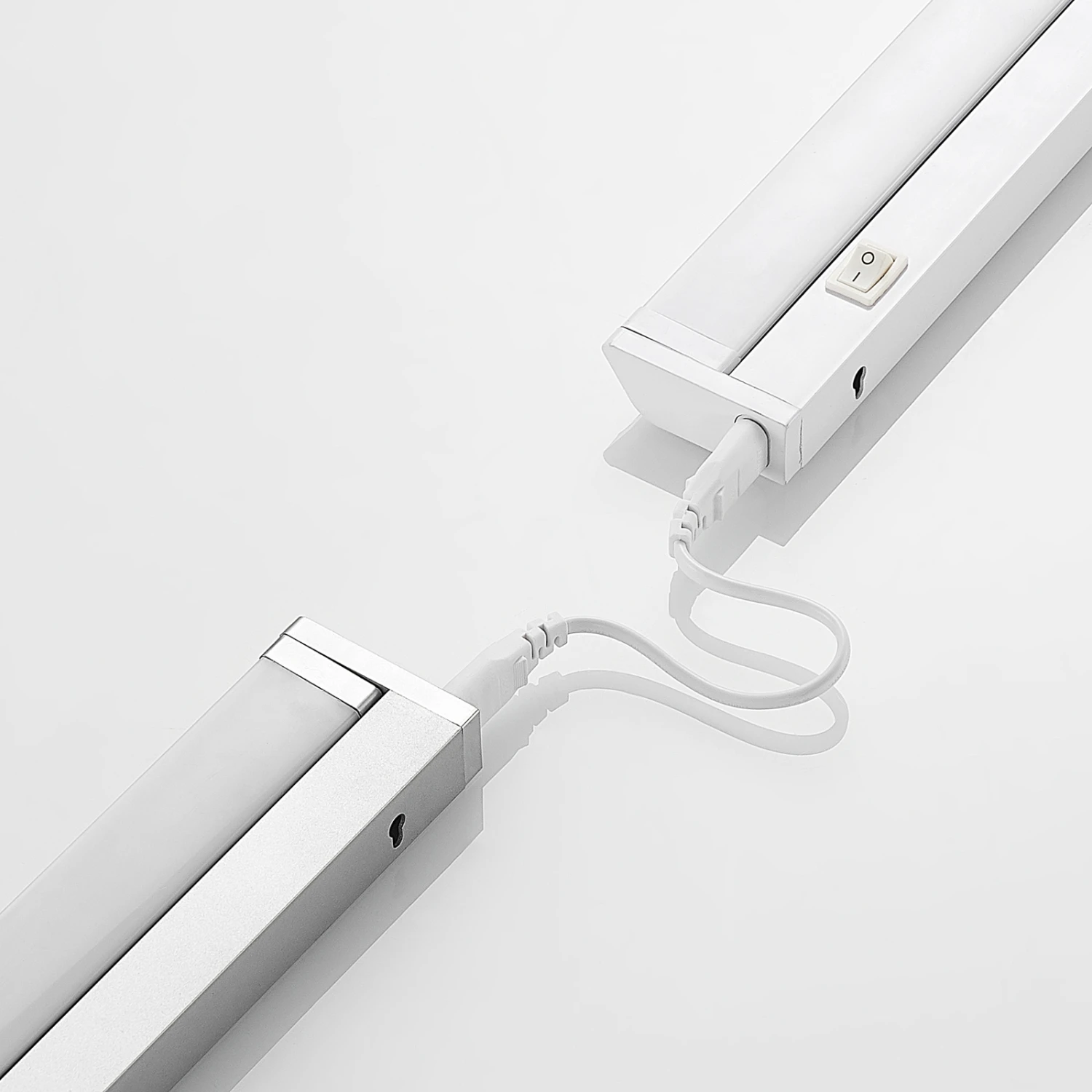 Die LED-Unterbauleuchte Savorik wurde aus langlebigem Kunststoff hergestellt und in einem schlichten Weiß gestaltet. So lässt sie sich wunderbar in unterschiedliche Umgebungen einfügen ohne gleich aufzufallen. Sie besitzt einen praktischen Ein- und Ausschaltknopf und ein längeres Verbindungskabel, mit dem man mehrere Leuchten nebeneinander in Reihe schalten kann. Dies bietet die Möglichkeit, auch größere Arbeitsflächen optimal auszuleuchten. Die fest verbauten LEDs sind stromsparend im Verbrauch und leuchtstark, sodass sie die Fläche unterhalb sehr gut beleuchten können. Diese Unterbaulampe ist eine praktische Lichtlösung für Küchen und Arbeitsräume.