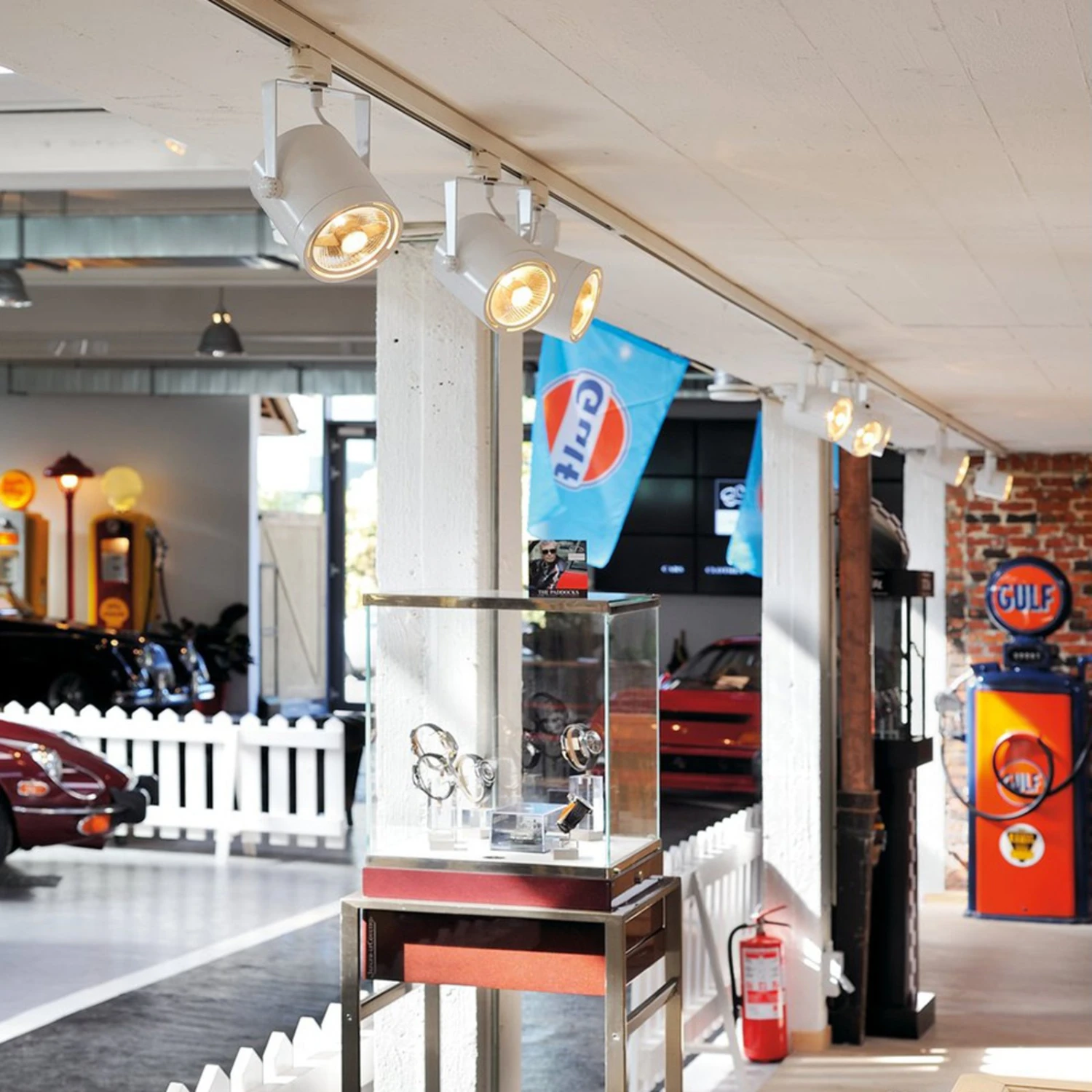 Dieser Strahler, der sich für 3-Phasen-Schienensysteme eignet, ist in zwei Farbvarianten erhältlich und eignet sich vor allem für gewerbliche Zwecke. Inklusive 3-Phasen-Adapter. Der Drehbereich dieses Strahlers liegt bei 350°, der Schwenkbereich bei 100°.