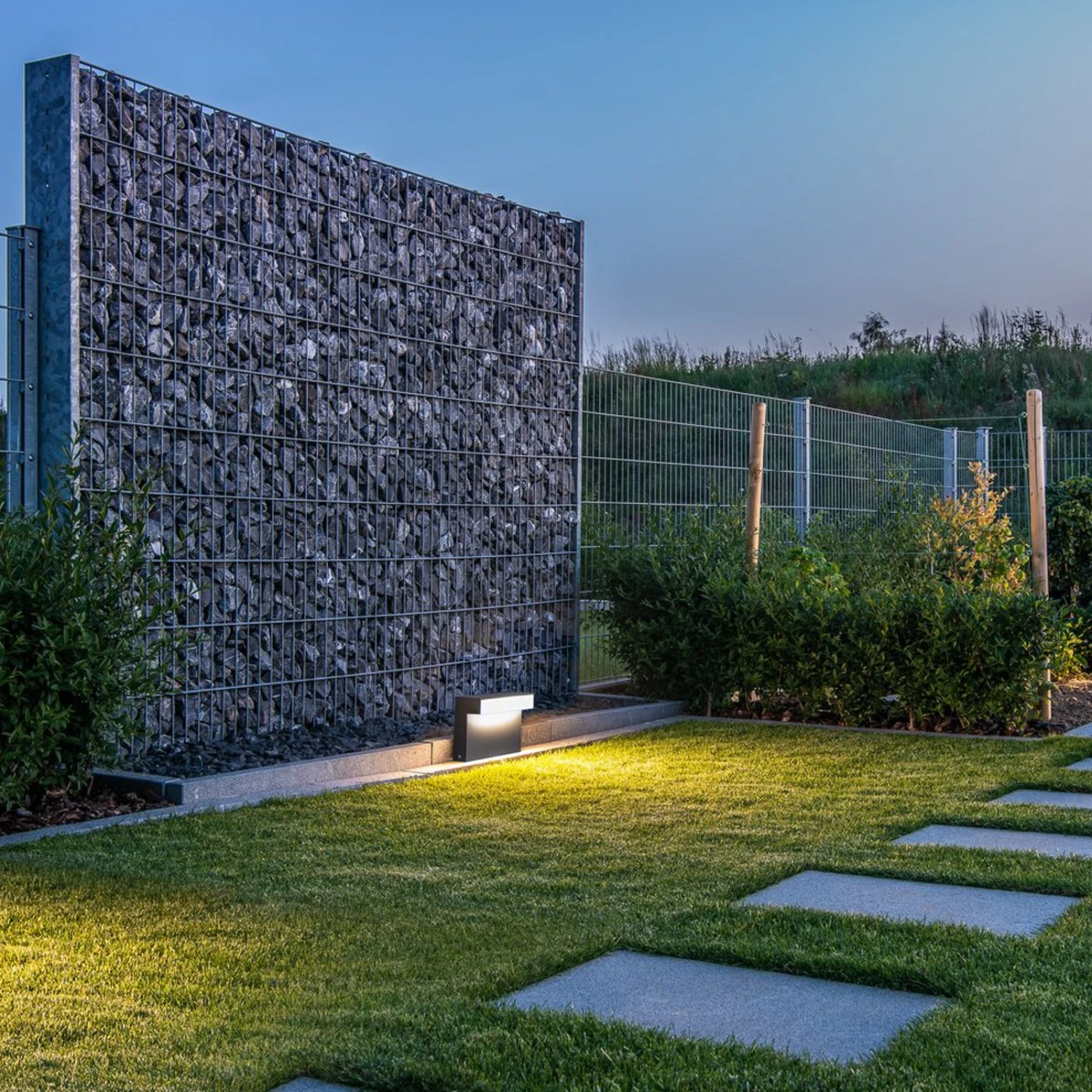 Das anthrazit-schwarze Finish und die kantige, simple Formgebung machen die Sockelleuchte L-Line Out zu einem modernen Element der Außenbeleuchtung. Ihre LEDs sind hinter einem matten Diffusor an der Unterseite des oberen Abschnitts der umgedrehten L-Form integriert. Sie erhellen den Bereich unterhalb und vor der Leuchte. Dabei kann über einen Schieber, der sich hinter einer verschraubten Abdeckung versteckt am Korpus befindet, die Lichtfarbe auf Warmweiß oder Universalweiß gestellt werden.