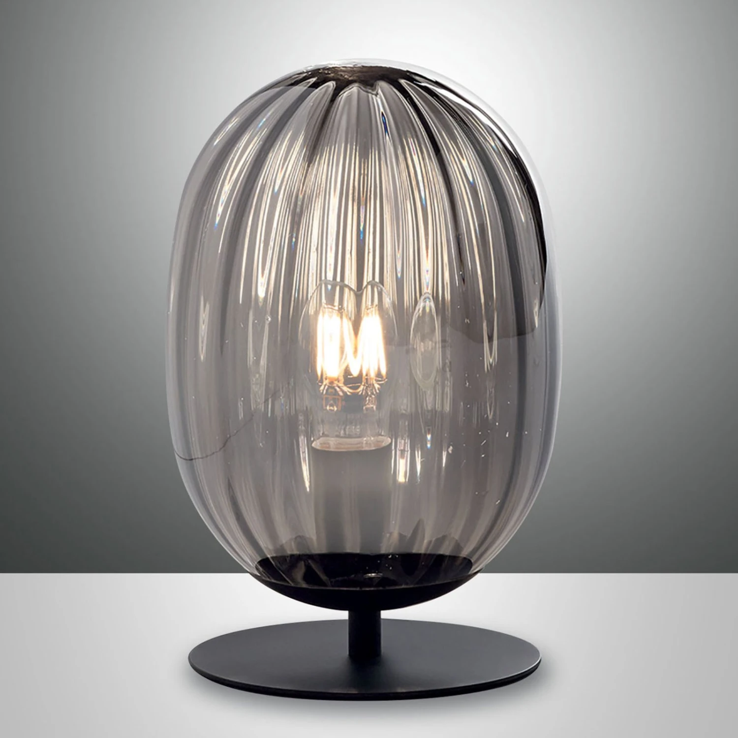 Mit Optik wie Lichtwirkung ist die Tischleuchte Infinity ein stimmungsvolles und elegantes Accessoire für moderne Inneräume. Auf dem Tisch, der Kommode oder der Fensterbank überzeugt Infinity mit dem gemütlichen Charakter der eleganten, hochovalen Sphäre aus geblasenem Rauchglas und den im Raum entstehenden Strahlen, die das einzusetzende Leuchtmittel durch das Wellenmuster des Glases erzeugt. Gerade eine Filamentlampe kommt in der Tischleuchte ideal zur Geltung.